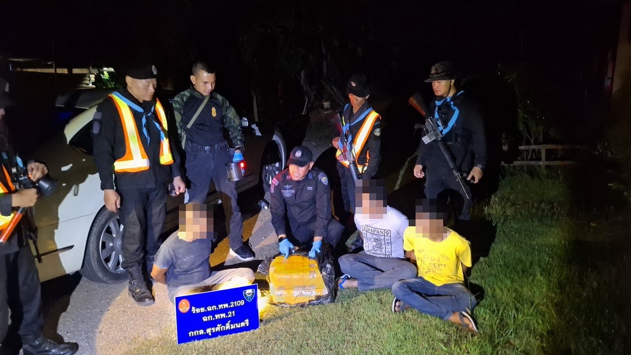 คืนวันที่ 30 ต.ค.67 ร.ท.ทนงศึก สีทอนสุด ผบ.ร้อย.ฉก.ทพ.2109 ฉก.ทพ.21 อ.ปากชม จ.เลย สภ.ปากชม ตชด.246 ฝ่ายปกครอง อ.ปากชม ร่วมกันตั้งด่านตรวจสกัด ที่ถนนเชียงคาน-ปากชม บ้านห้วยเหียม ต.หาดคัมภีร์ อ.ปากชม พบรถเก๋งนิสสันเทียน่าสีขาว ทะเบียน ฌฬ 5627 กรุงเทพมหานคร ขับเข้ามาด่านตรวจลักษณะ มีชายวัยรุ่น 3 คน นั่งในรถมีพิรุ จนท.ขอตรวจค้นรถ ทราบชื่อคนขับนายตะวัน อายุ 26 ปี (คนขับ) นายทวี อายุ 23 ปี นายสุขสันต์ อายุ 38 ปี ทั้ง 3 คน อยู่ ต.ลำห้วยหลัว อ.สมเด็จ จ.กาฬสินธุ์ ตรวจค้นภายในรถ พบถุงพลาสติกสีดำวางอยู่หลังเบาะคนขับรถ มีเมื่อเปิดดูถุงพลาสติกพบยาบ้า จำนวน 34 แพ็ค หรือ 100 มัด รวม 200,000 เม็ด จึงจับกุมตัว โดยผู้ต้องหาทั้ง 3 คน ให้การรับสารภาพว่า มีนายทุนจ้างให้มารับยาบ้าของนายทุนประเทศเพื่อนบ้านที่ริมแม่น้ำโขง แต่มาเจอด่านตรวจตรวจค้นจับกุมตัวได้ก่อน จนท.นำตัวพร้อมของกลางส่ง พงส.สภ.ปากชม ดำเนินคดีตามกฎหมายต่อไป