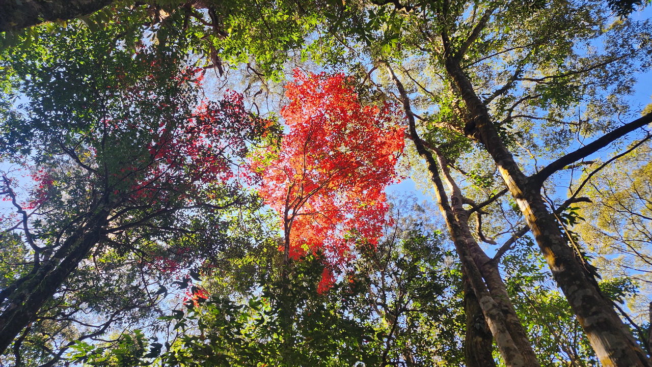 วันที่ 18 ธ.ค.67 ที่เขตรักษาพันธุ์สัตว์ป่าภูหลวง อ.ภูเรือ จ.เลย นักท่องเที่ยวเดินทางมาชมความสวยงามของใบเมเปิ้ลหรือก่วมแดง หรือไปเดือนห้า เปลี่ยนใบจากสีเขียวเป็นแดงสด และผลัดใบร่วงลงสู่พื้นดิน รอนักท่องเที่ยว นักศึกษา และประชาชน มาสัมผัสความงาม และศึกษาธรรมชาติ ตั้งแต่ช่วงต้นหนาวเดือนธันวาคม ถึงต้นกุมภาพันธ์ ของทุกปี แต่ในปีนี้ความหนาวเย็นและลมแรงเร็ว ทำให้ใบเมเปิ้ลจากสีเขียวเปลี่ยนเป็นสีแดงเร็วกว่าทุกปี
