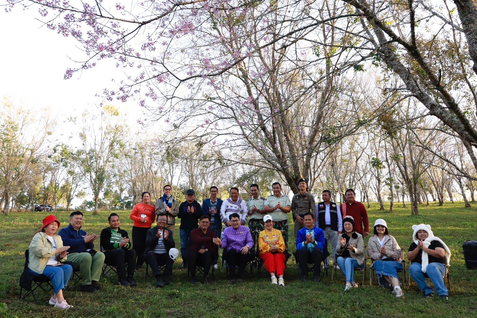 วันที่ 30 ธันวาคม 2567 เวลา 15.00 น. ที่อุทยานแห่งชาติภูหินร่องกล้า ต.กกสะทอน อ.ด่านซ้าย จ.เลย นายชัยพจน์ จรูญพงศ์ ผู้ว่าราชการจังหวัดเลย พร้อมด้วย นายทวี เสริมภักดีกุล ผู้ว่าราชการจังหวัดพิษณุโลก และ นายลำยอง ศรีเสวก หัวหน้าอุทยานแห่งชาติภูหินร่องกล้า ร่วมแถลงข่าวเปิดฤดูกาลท่องเที่ยวชมดอกนางพญาเสือโคร่ง หรือดอกซากุระเมืองไทยบนหุบเขาสีชมพู “ภูลมโล” ที่ขณะนี้ต้นนางพญาเสือโคร่งเริ่มแทงช่อดอกให้เห็นแล้ว คาดว่าจะเบ่งบานสวยงามตลอดเดือนมกราคม 2568 โดยมี หัวหน้าส่วนราชการนักท่องเที่ยว ร่วมแถลงข่าว