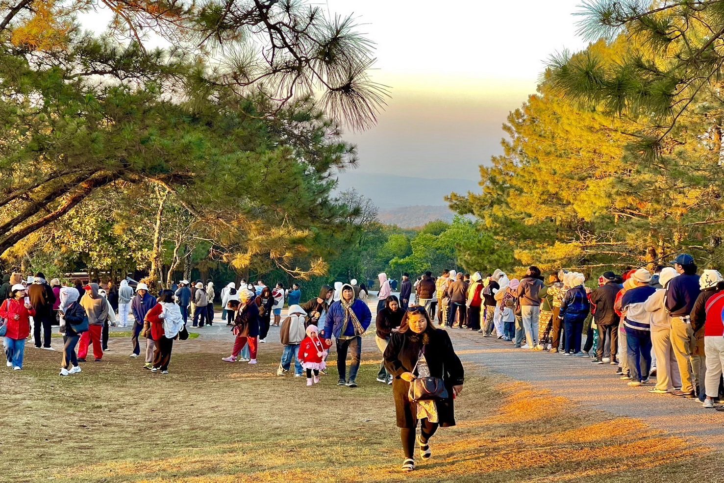 วันที่ 31 ธันวาคม 67 วันสุดท้ายของปี 2567 มีนักท่องเที่ยวกว่า 1,600 คน เดินทางเข้ามาท่องเที่ยวบนยอดภูเรือในวันสุดท้ายของปี เพื่อสัมผัสกับอากาศที่หนาวเย็นยะเยือก ท่ามกลางสายหมอกที่พาดผ่านทิวเขาสวยงามบนยอดภูเรือ โดยอุณหภูมิต่ำสุดเช้าวันนี้วัดได้ 7 องศาเซลเซียส หลังจากชมยอดภูเรือเสร็จแล้ว นักท่องเที่ยวต่างพากันเข้าร่วมกิจกรรมทำบุญตักบาตรส่งท้ายปีเก่าต้อนรับปีใหม่ ที่ทางอุทยานฯ จัดขึ้น บรรยากาศเป็นไปอย่างคึกคัก มีประชาชนและนักท่องเที่ยวจำนวนมากมารอตักบาตรข้าวสารอาหารแห้ง แด่ พระภิกษุสงฆ์ 9 รูป ซึ่งรูปแบบของกิจกรรมเป็นไปอย่างเรียบง่ายตามวิถีของชาวภูเรือ นักท่องเที่ยว ผู้ประกอบการ เจ้าหน้าที่ ต่างอิ่มบุญกันถ้วนหน้า และต่างชื่นชมในกิจกรรมทำบุญตักบาตรในครั้งนี้ในครั้งนี้