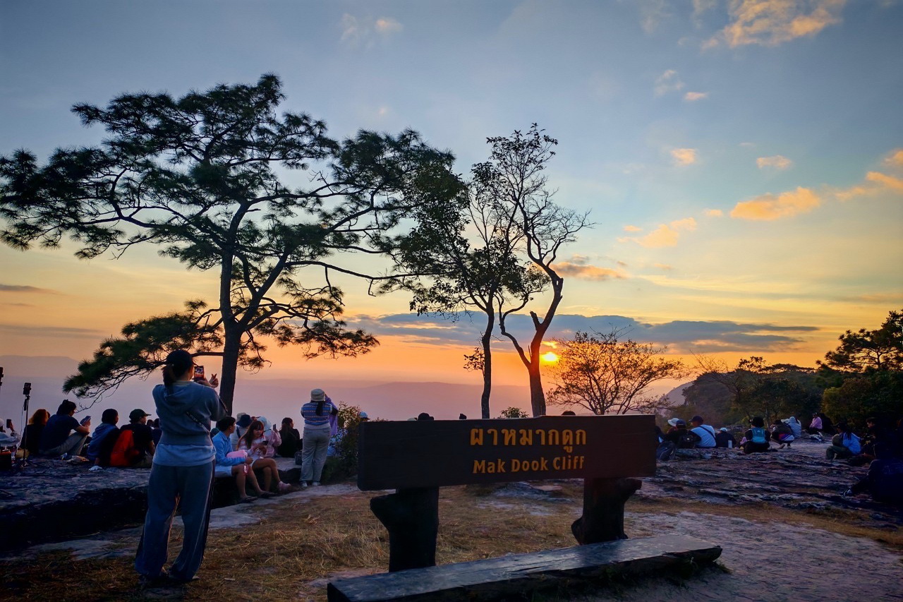 นายอดิศร เหมทานนท์ หัวหน้าอุทยานแห่งชาติภูกระดึง เปิดเผยว่า ในช่วงวันหยุดยาวเทศกาลปีใหม่ ในปีนี้มีนักท่องเที่ยวที่มาพิชิตยอดภูกระดึง สะสมยอดภูกระดึงประมาณ 1,000 คน น้อยกว่าทุกปีที่ผ่านมา เนื่องจากมีช้างป่าทำร้ายนักท่องเที่ยวจนเสียชีวิต ส่วนเย็นนี้นักท่องเที่ยวได้มารอชมพระอาทิตย์ลับฟ้าแสงสุดท้ายของปี 2567 ที่ผาหมากดูก ท่ามกลางอากาศหนาว 8.5 องศา ซึ่งอุทยานฯมีความพร้อมในการดูแลนักท่องเที่ยว