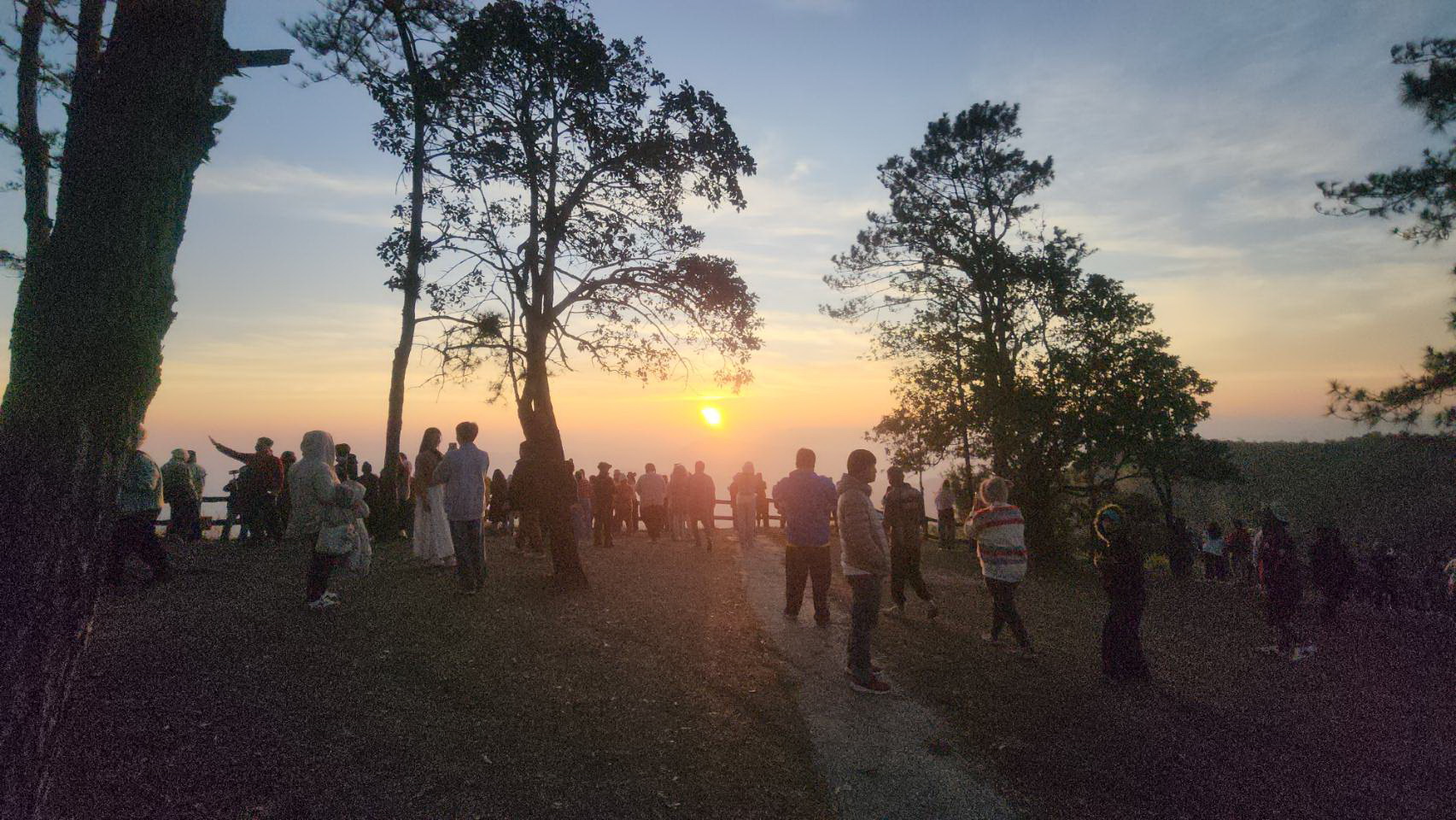 ส่วนที่อุทยาแห่งชาติภูกระดึง มีนักท่องเที่ยวประมาณ 1,000 คน ตื่นเช้ารอชมแสงแรกของปีใหม่ 2568 ที่อ่างเก็บน้ำ หลังแปร ผาหมากดูก แลพผาเหยียบเมฆ ท่ามกลางอากาศที่หนาวเย็น 8 องศา เก็บภาพไว้เป้นที่ระลึก