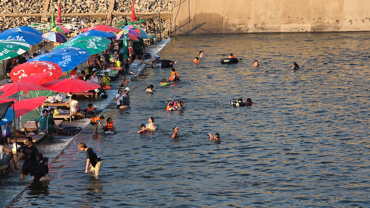 วันที่ 26 เมษายน 68 สภาพอากาศของจังหวัดเลย อุณหภูมิสูงถึง 39-40 องศา ทำให้ประชาชนหนีร้อน จูงมือลูกหลานลงเล่นน้ำ ร่วมรับประทานอาหาร ที่ฝายยางบ้านห้วยโตก หมู่ 1 ต.โป่ง อ.เมืองเลย จ.เลย ที่อยู่ไม่ไกลจากตัวเมืองเลย เพื่อคลายความร้อน โดยเฉพาะช่วงเวลาเย็นๆ จะมีชาวบ้านจำนวนมากมาเล่นน้ำ เพราะเป็นช่วงที่อากาศไม่ร้อนเกินไป