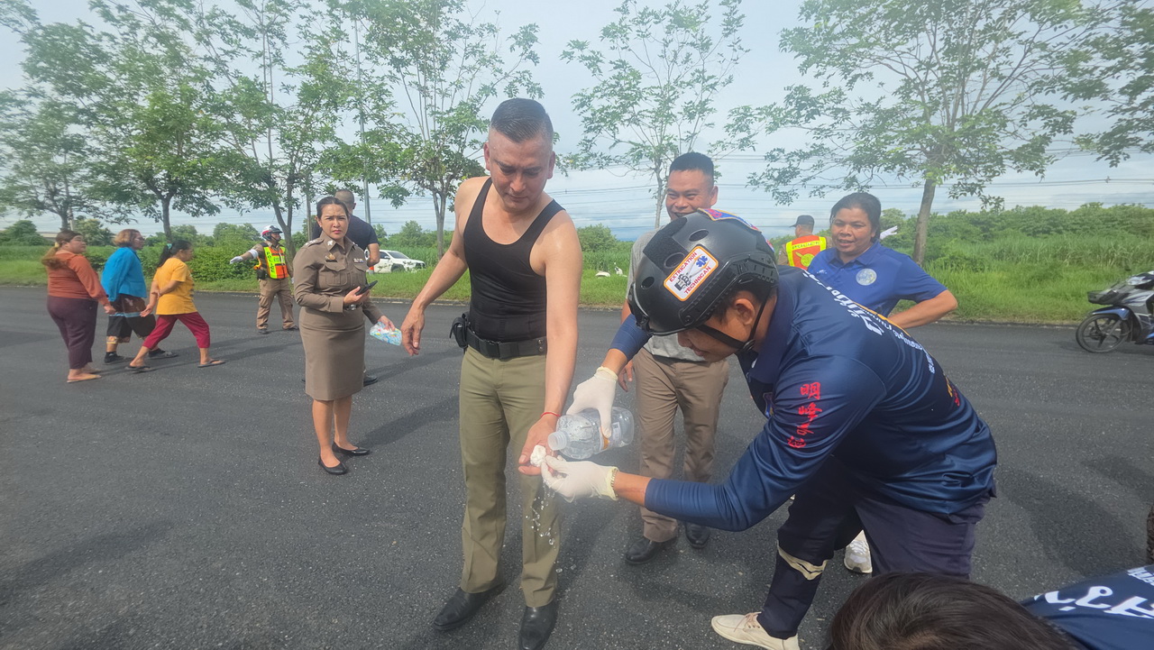 เมื่อเวลา 09.00 น. วันที่ 17 ก.ค.68 พ.ต.อ.จตุรวิทย์ คชน่วม หรือรองเทน รองผู้บังคับการกองตรวจราชการ 4 สำนักงานจเรตำรวจ พร้อมคณะเดินทางรถตู้ไปตรวจราชการที่ อ.นากลาง จ.หนองบัวลำภู มาถึงถนนสายเลย-วังสะพุง ก่อนถึงไฟแดงบ้านปากปวน ต.ปากปวน อ.วังสะพุง จ.เลย พบเห็นรถเก๋งโตโยต้าวิช สีขาว ทะเบียน กฉ 7341 เลย เสียหลักลงข้างทาง รีบจอดรถลงไปช่วยเหลือ พบคนขับเป็นชาย อายุ 77 ปี สัญชาติสวีเดน ถูกอัดก็อปปี้ในรถได้รับบาดเจ็บสาหัส แจ้งไปยัง พ.ต.อ.นพดล เปลี่ยนรูป ผกก.สภ.วังสะพุง ประสานแพทย์ รพ.วังสะพุง กู้ภัยสว่างคีรีธรรม ขอเครื่องตัดถ่างมาที่เกิดเหตุ