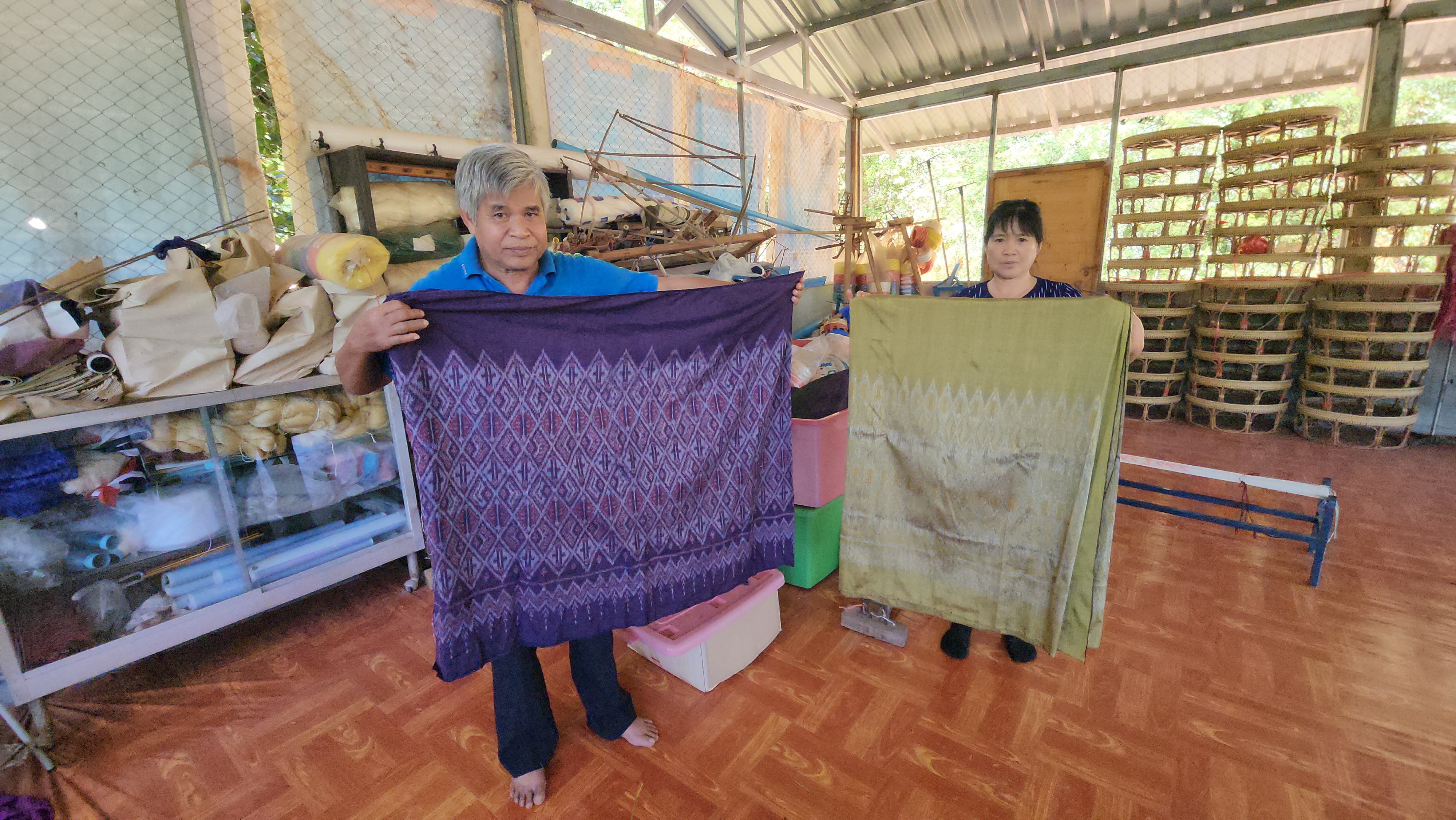 การเสด็จของพระองค์ฯ ท่าน ชาวบ้านได้ถวายผ้ามัดหมี่พื้นเมือง ที่มีผ้าไหมมีดหมี่เลย ยังคงเหลืออยู่ที่บ้านหมากแข้งที่เดียว จนพระองค์ได้ให้ชาวบ้านทอผ้าถวาย จนวันที่ 24 กุมภาพันธ์ พ.ศ.2518 พระองค์เสด็จมาครั้งที่ 2 พระองค์พระราชทานลายผ้าหนึ่ง ให้ชาวบ้านทอผ้าถวายอีก จนทอผ้าเสร็จไม่รู้ลายทอผ้าจึงตั้งชื่อว่า “ลายราชินี” และถวายให้พระองค์ท่าน พระองค์ท่านยังให้ศูนย์ศิลปชีพมาติดตาม และสอนการทอผ้าอีกด้วย จนชาวบ้านอนุรักษ์จนมาถึงทุกวันนี้ และลายทอผ้านี้มีที่บ้านหมากแข้งที่เดียว