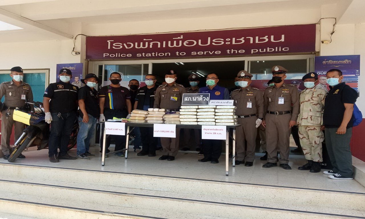 เมื่อเวลา 12.30 น. วันที่ 20 เม.ย.64 ตร.ชุดสืบสวน สภ.นาด้วง จ.เลย ออกตรวจพื้นที่บ้านป่าหวาย หมู่ 6 ต.นาด้วง อ.นาด้วง พบนายอรรถพล โพธิ์จักร มีพฤติการณ์เสพยาอยู่หน้าบ้าน จึงเข้าตรวจค้นแต่ไม่พบสิ่งผิดกฎหมาย แต่นายอรรถพล มีอาการพิรุธจึงได้ขอตรวจค้นภายในบ้าน พบยาบ้า 18 มัด ยาไอซ์ หนัก 1.1 กก. กัญชา 29 แท่ง จึงแจ้งข้อ มียาเสพติดให้โทษประเภท 1 (ยาบ้าและยาไอซ์) ไว้ในความครอบครองเพื่อจำหน่าย และมียาเสพติดให้โทษประเภท 5 (กัญชา) ไว้ในความครอบครองเพื่อจำหน่าย โดยผิดกฎหมาย นำตัวส่ง พงส.สภ.นาด้วง ดำเนินคดีตามกฎหมาย