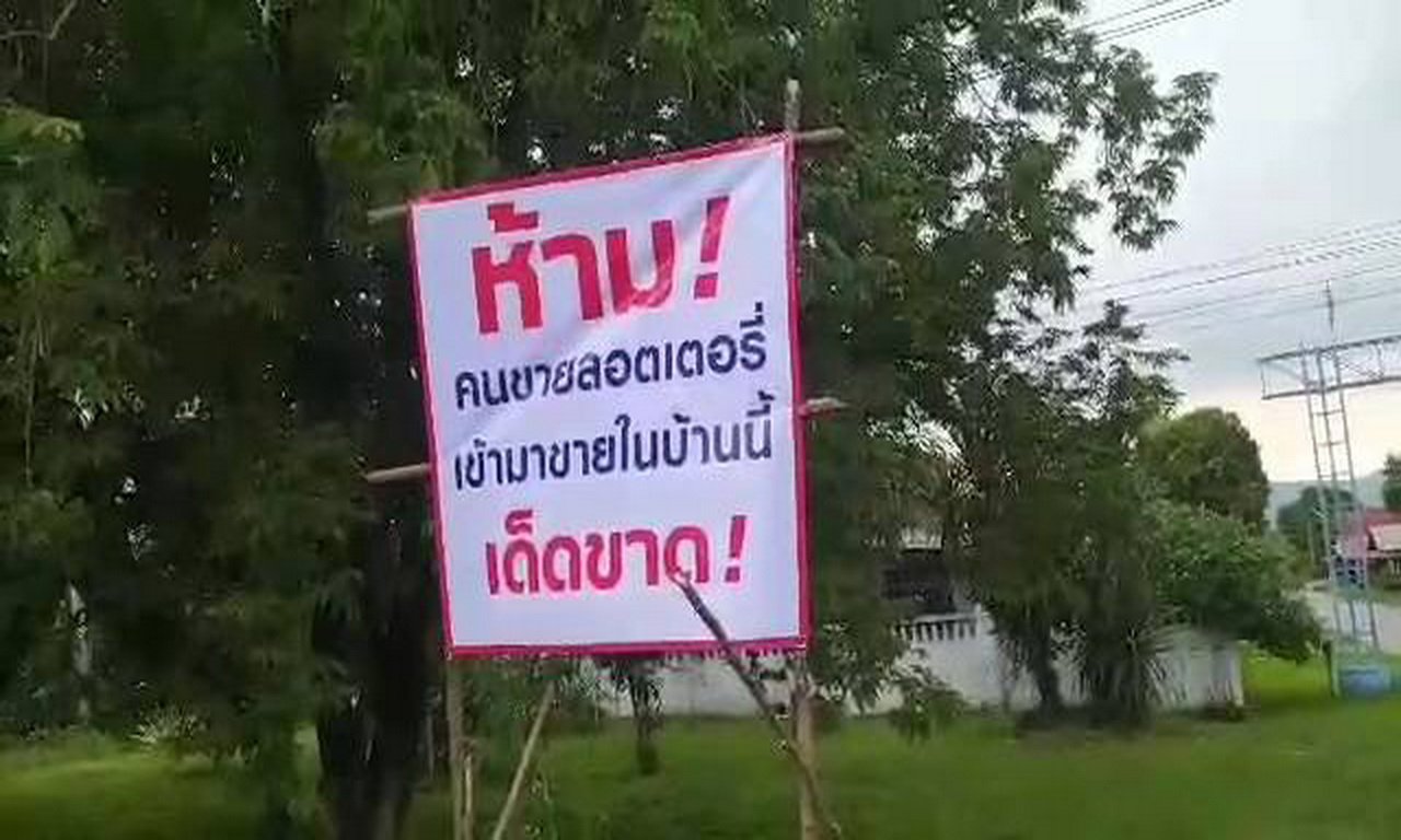เมื่อเวลา 13.00 น. วันที่ 8 พ.ค.64 ผู้ที่ขับรถสัญจรไปมาบริเวณทางเข้าหมู่บ้านห้วยคะมะ ต.ภูกระดึง อ.ภูกระดึง ต้องแปลกใจคนที่มีป้ายข้อความ “ห้ามคนขายลอตเตอรี่เข้ามาขายในบ้านนี้เด็ดขาด” ว่าเกิดอะไรขึ้น
