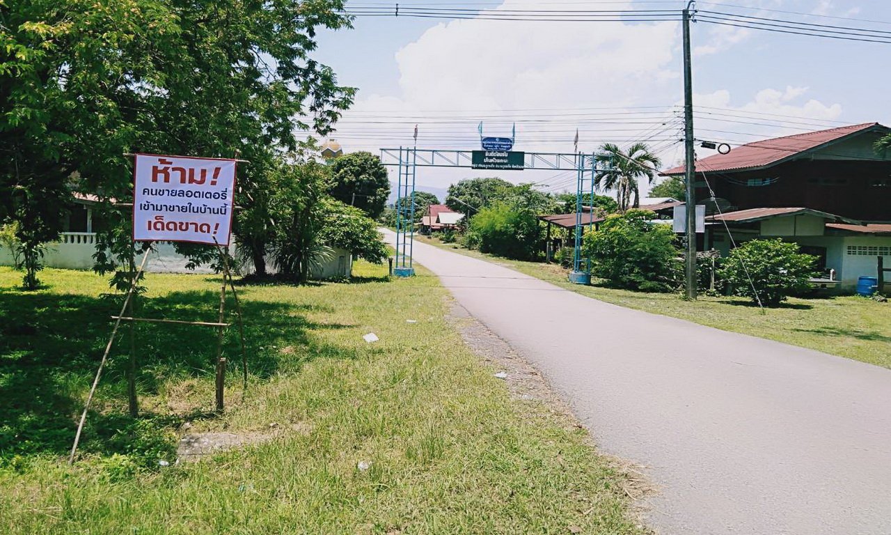 ชาวบ้านห้วยคะมะ อำเภอภูกระดึง ปักป้ายขนาดใหญ่ปากทางเข้าหมู่บ้าน “ห้ามคนขายลอตเตอรี่เข้ามาขายในบ้านนี้เด็ดขาด” ป้องกันแพร่ระบาดโควิด