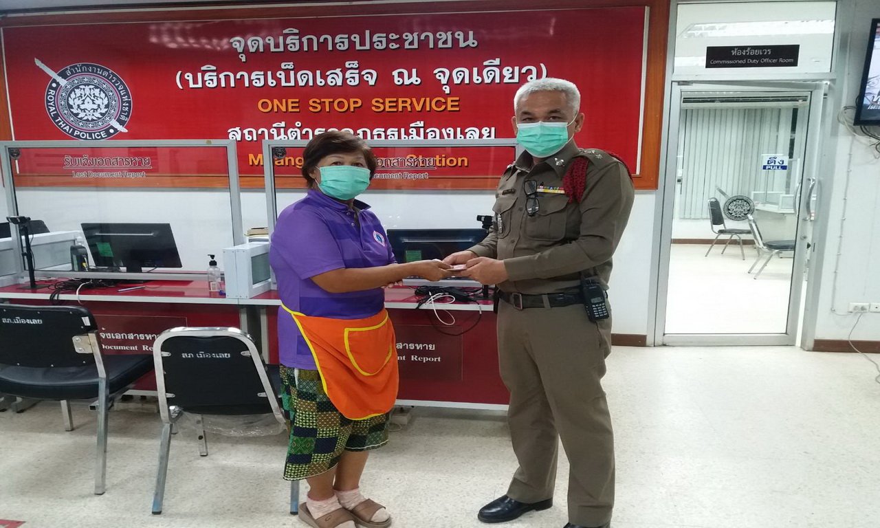 เมื่อเวลา 20.36 น. วันที่ 14 พ.ค.64 นางยลรดา บุญวิเศษ อายุ 34 ปี ได้เดินทางมาพบ ร.ต.อ.ประเสริฐ โตบำรุง รอง สว.(สอบสวน) สภ.เมืองเลย จ.เลย ว่า ตนเองกับสามี ได้ไปซื้อกับข้าวที่ตลาดเช้า ขนาดกำลังยืนรออยู่นั้น เห็นธนบัตรจำนวนหนึ่งหล่นอยู่ที่พื้น โดยไม่ทราบของใคร จึงเก็บขึ้นมาโดยยังไม่ได้นับจำนวน และเดินทางมาที่ สภ.เมืองเลย เพื่อลงบันทึกประจำวันไว้เป็นหลักฐาน เพื่อคืนเจ้าของ พงส.นับดูพบเป็นเงิน 1,890 บาท