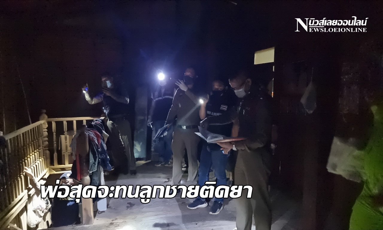 สอบถามนายโต้ง (ผู้ก่อเหตุ) เล่าว่า ลูกชายไม่มีครอบครัว มีพฤติกรรมก้าวร้าว ติดยา ไม่ทำงาน ชอบหาเรื่องด่า ทำร้ายร่างกายอยู่ตลอดเวลา ช่วงเย็นมีเรื่องทะเลาะกับลูกแล้วก็จบไป จนกระทั่งตนเอง ภรรยา และหลานสาววัย 3 ขวบเข้านอน ตนเองนอนที่พื้น ส่วนภรรยาและหลานนอนในมุ้งที่เตียง จู่ๆ ลูกชายเดินเข้าตบ เตะ ต่อยขณะนอนอยู่ จนทนไม่ไหวเอามีดปลายที่หัวนอนออกมาขู่ลูก แต่ลูกกลับวิ่งเข้ามาเพื่อทำร้ายอีก แต่พลาดถูกมีดปาดคอ แม่เห็นเข้ามาแย่งมีดจนถูกมีดบาดมือ ส่วนลูกวิ่งหนีตายออกจากห้อง มานอนเสียชีวิตที่อยู่ที่พื้นบ้านก่อนลงบันได หลังก่อเหตุไม่ได้หลบหนีไปไหนรอมอบตัวกับ จนท.ตร.